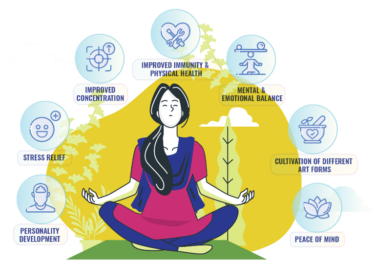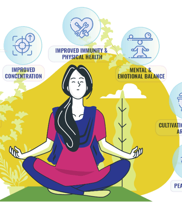 Illnesses and ailments arise due to imbalances in the subtle energy system. Through Sahaja meditation, one can heal, correct, balance, and nourish the subtle energy centers (chakras). Health benefits include a reduction in allergies and asthma, improvement in general immunity, and help with other ailments such as high blood pressure, high cholesterol, etc.